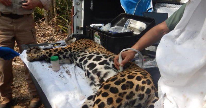 Como parte del protocolo, el equipo veterinario aplicó anestesia para su manejo seguro y realizó una evaluación clínica integral en campo. El felino registró un peso de 40.250 kilogramos. Además, se practicaron estudios con equipo portátil de rayos X y ultrasonido, toma de medidas morfométricas y extracción de muestras de sangre y pelo.