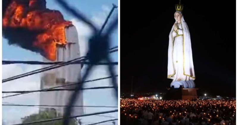 CIUDAD DE MÉXICO.-Un impactante incendio consumió casi en su totalidad la estatua monumental de Nuestra Señora de Fátima que se construía en el barrio de Pajuçara, en la Zona Norte de Natal, Brasil, este martes 24 de febrero. La estructura, que mediría 35 metros de altura más una base de 8 metros, estaba a punto de ser concluida.