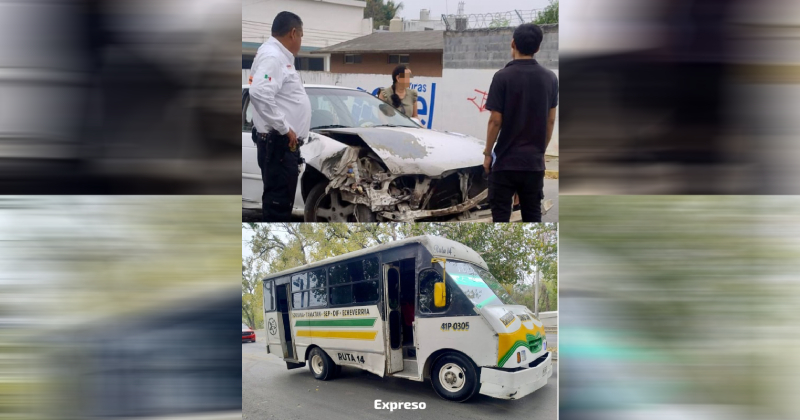 Ciudad Victoria, Tamaulipas.- Una mujer terminó con diversos golpes luego de protagonizar un aparatoso accidente automovilístico la mañana del sábado, en el que también se vio involucrado un microbús del transporte público, generando movilización de autoridades en una transitada zona de la ciudad.