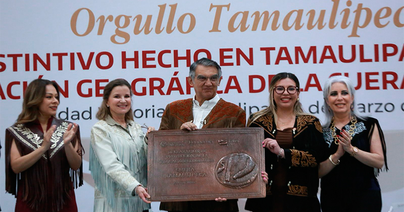 “Vamos a exportar desde aquí lo que se produzca, porque aquí tenemos talento, tenemos compromiso y tenemos también muchas ganas de demostrar, desde Tamaulipas, que lo hecho en Tamaulipas y lo hecho en México está mejor hecho”, expresó la representante del secretario de Economía, Marcelo Ebrard, al encabezar junto al gobernador del Estado la ceremonia de entrega del distintivo Hecho en Tamaulipas y Hecho en México y la Indicación Geográfica de la Cuera Tamaulipeca.