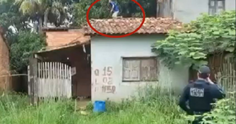 Los policías observan la escena con detenimiento antes de ir tras él. Al momento de saltar, el sujeto no logra alcanzar la superficie del otro techo y termina impactando violentamente contra la pared. Tras el golpe, cae al suelo donde permanece noqueado por unos segundos. Al recuperar el conocimiento y verse sin escapatoria, el hombre decide rendirse: se hinca y permite que los oficiales le coloquen las esposas.
