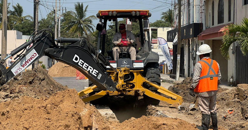 CIUDAD MADERO, TAM.- Con el objetivo de fortalecer la infraestructura sanitaria y mejorar el servicio a la ciudadanía, COMAPA Sur realiza trabajos de reposición de una línea general de drenaje de 12 pulgadas, con una extensión de 70 metros lineales, en la calle República de Panamá, entre América del Norte y el bulevar Adolfo López Mateos, en la colonia Las Américas de Ciudad Madero.