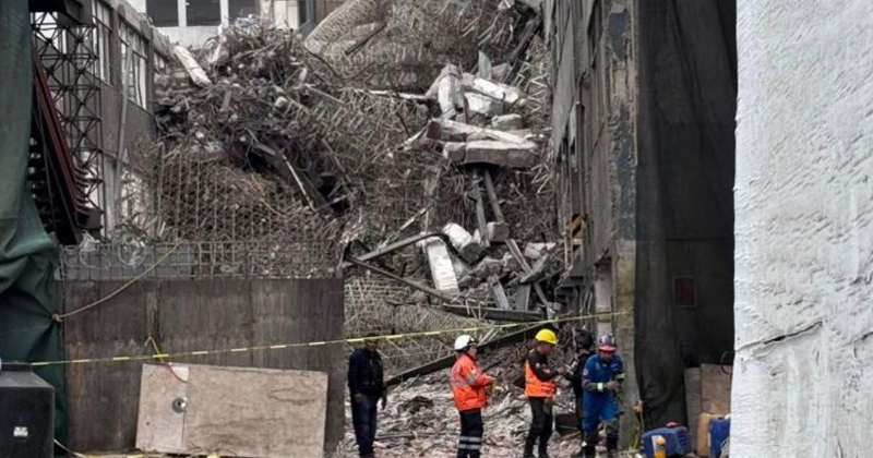 De acuerdo con las primeras indagatorias, tres losas cayeron al interior del edificio, atrapando a algunos trabajadores que se encontraban en el interior. Más de 50 empleados lograron salir sin problemas, pero cuatro quedaron al interior.
