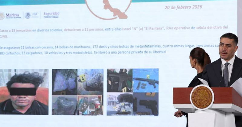 Del 1 de octubre al 28 de febrero de 2026, se han obtenido los siguientes resultados: se han detenido 46 mil personas por delitos de alto impacto, se han asegurado 24 mil armas fuego,asegurado 346 toneladas de droga y el Ejército y la Marina han desmantelado 2 mil 318 laboratorios clandestinos y áreas de concentración para la producción de metanfetaminas, que se traducen en millones de dosis que no llegan a las calles