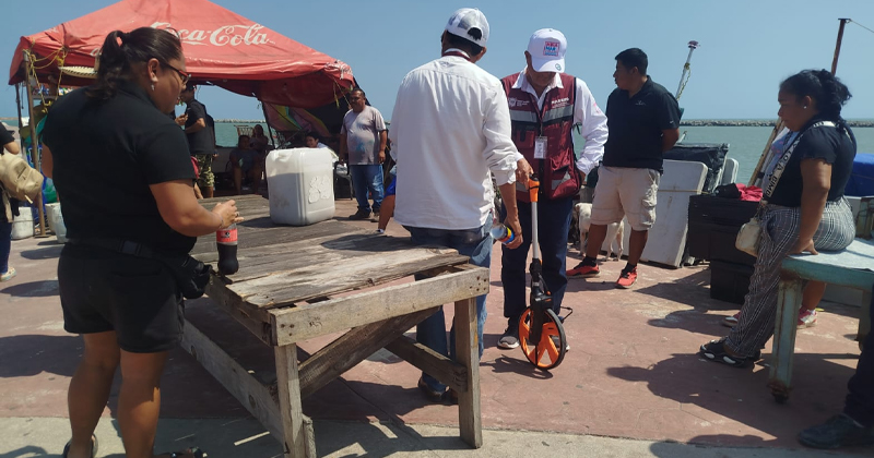 CIUDAD MADERO, TAM.- Un operativo para medir y delimitar los espacios de comerciantes fue realizado en la zona de Escolleras, donde autoridades municipales detectaron puestos que excedían el área permitida.