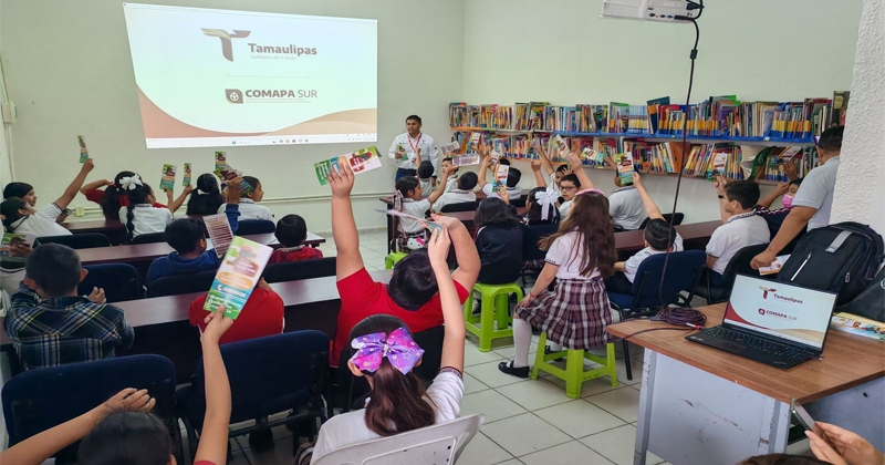 TAMPICO, TAMAULIPAS.- Con el propósito de fortalecer la conciencia sobre el cuidado del agua desde temprana edad, COMAPA Sur continúa consolidando sus acciones de cultura hídrica en planteles educativos de nivel básico de la zona conurbada. A través del programa de enseñanza “Protectores del Agua”, el organismo impulsa actividades formativas dirigidas a niñas y niños, fomentando el conocimiento y la responsabilidad en el uso de este recurso vital.