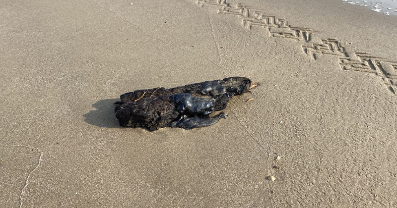 Durante la inspección, personal de la Armada de México identificó una masa de hidrocarburo intemperizado en forma sólida, además de fragmentos pequeños dispersos en la zona.