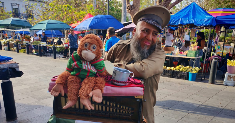 Desde la capital del país; Gabriel Rivera, organillero acompañado de “Lupe”, un mono de peluche con playera de México, arribó a Tampico para ofrecer su música durante esta temporada vacacional de Semana Santa.
