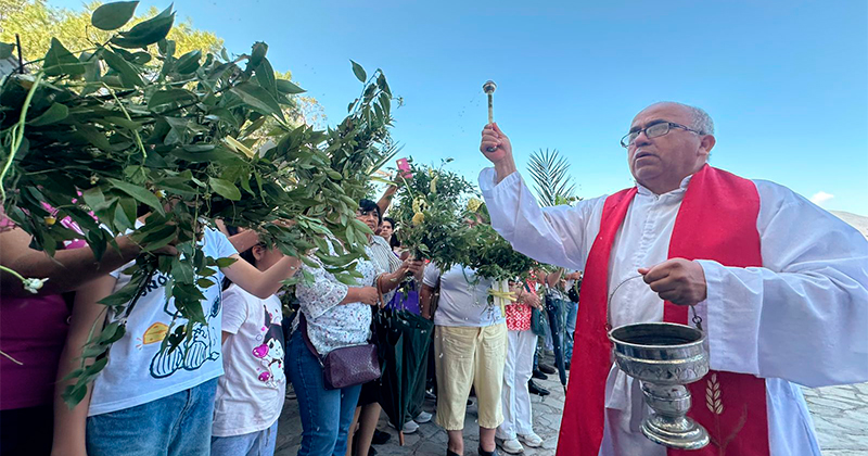 Cientos de feligreses se dieron cita desde las 9:30 de la mañana en la plazita de la Sosa, para participar junto al párroco de dicho templo: Gerardo Guerrero Pachuca, en la peregrinación y bendición de ramos.