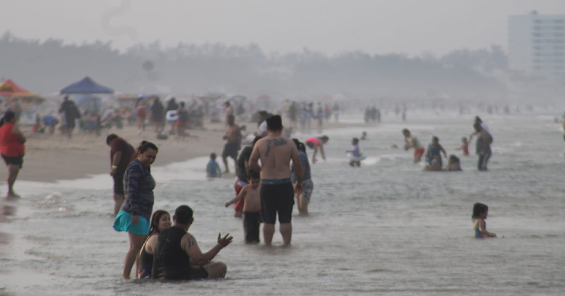 CIUDAD MADERO, TAM.- El sonido del oleaje, la música que sale de bocinas portátiles y las risas de familias marcan la jornada en Playa Miramar durante este Martes Santo.