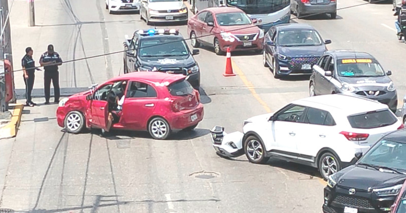 Se dio a conocer que el conductor del carro compacto iba transitando de norte a sur y al llegar a ese punto, dio vuelta a la izquierda para incorporarse al estacionamiento de una gasolinera, siendo impactado en el costado izquierdo por la Hyundai que se dirigía a la avenida Hidalgo.