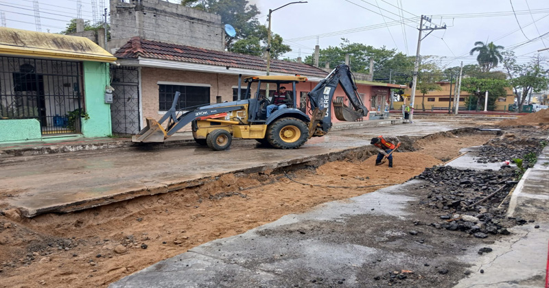 Continúan las acciones de rehabilitación en la calle Burgos, ubicada en la colonia Volantín, como parte del programa estatal de atención a socavones, enfocado en resolver esta problemática de fondo.