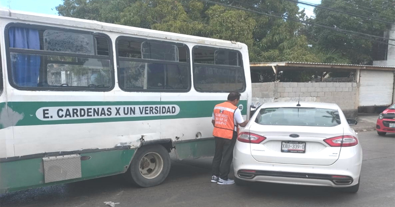 El coche transitaba por la calle Juárez y al llegar a ese sitio, el operador ignoró un señalamiento fijo de alto por lo que al seguir su camino, fue impactado por la otra unidad hasta quedar en la parte trasera del bus.