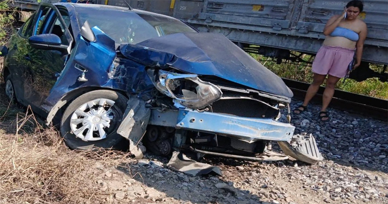 Presuntamente, el operador de la unidad intentó ganarle el paso al tren en ese cruce ferroviario pero sin conseguirlo por lo que fue embestido, dejando a un lado de las vías férreas al Aveo, mismo que quedó inservible.