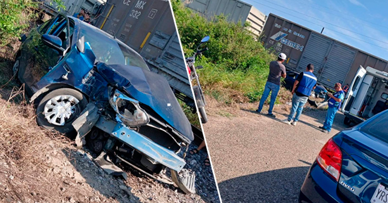 La unidad siniestrada es un carro Chevrolet Aveo color azul, que fue impactado por el tren que jalaba vagones de la empresa Cemex, mismo que resintió daños considerables.