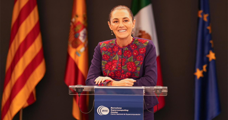 Antes de volver a México, la Presidenta visitó el Centro Nacional de Supercomputación de Barcelona, sede del MareNostrum 5, uno de los sistemas más avanzados de Europa.