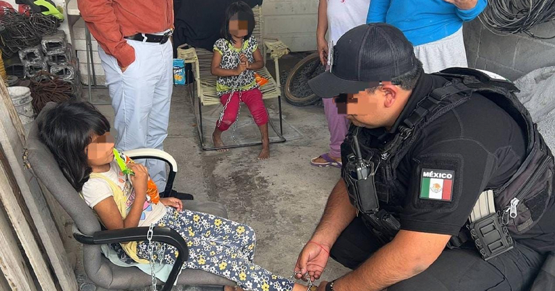 Los elementos de la Guardia Estatal acudieron a un domicilio ubicado en la calle Pino de la colonia Balcones de Alcalá, localizando a las dos niñas al interior de un domicilio, verificando que tenían cadenas sujetas a uno de sus pies.