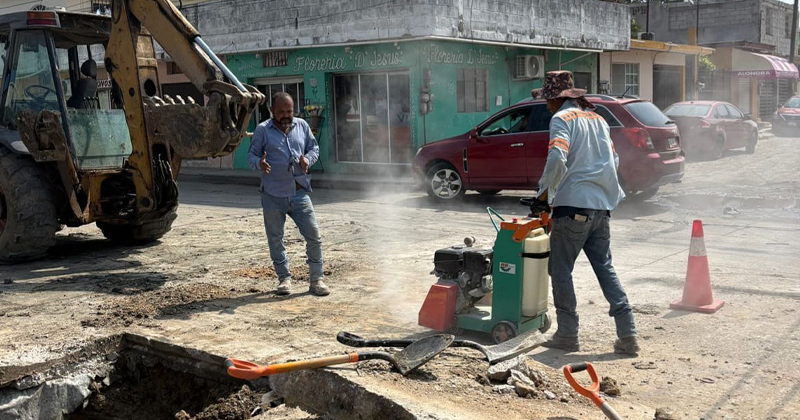 TAMPICO, TAM.-En la calle República Dominicana, entre México y Camboya, se lleva a cabo la reparación de un tramo de colector y atarjea de 12 pulgadas, como parte de las acciones de mantenimiento a la red sanitaria impulsadas por el Gobierno del Estado en coordinación con COMAPA SUR.
