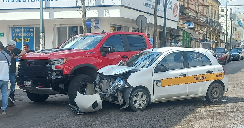 Poco faltó para que las unidades se estrellaran contra un puesto instalado en la banqueta que era atendido por un vendedor.