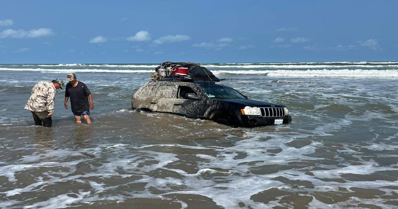El rescate de una camioneta Jeep Cherokee de color negro se prolongó por 22 horas, debido a que las maniobras se complicaron por el aumento súbito de la marea