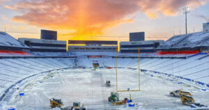 La nieve volvió a hacerse presente este lunes en Highmark Stadium, el gélido escenario donde se jugará el duelo de playoffs entre Buffalo Bills y Pittsburgh Steelers