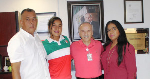 Gabriela López junto a sus padres y el Director del Instituto Tamaulipeco del Deporte