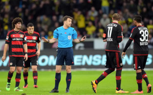 En protesta porque el técnico del Bayer, Roger Schmidt, se negara a salir de la cancha tras ser expulsado