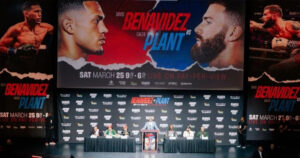David Benavidez y Caleb Plant por poco se pelean en el pesaje