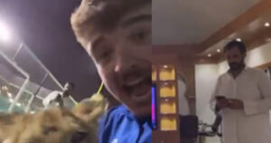 Lo más increíble de la experiencia fue cuando los millonarios les presumieron a su mascota, un cachorro de león que los dejó atónitos