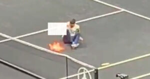 Un hombre irrumpió en el evento, se sentó justo en medio de la cancha y, con un encendedor, prendió fuego a su brazo