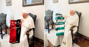 El Pontífice posó con las casacas de los equipos mexicanos. Orlegi Sports agradeció al Pontífice por recibir las playeras