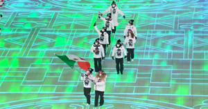 Los abanderados ondearon juntos el lábaro patrio en la ceremonia de inauguración que se realizó en el Estadio Nacional de Pekín