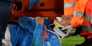 Tras una disputa de balón, el mexicano se resbaló y su rostro se estrelló en el cuerpo de Wilfred Ndidi, en el duelo entre el Nápoles y Leicester en la Europa League