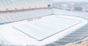 El Commonwealth Stadium de Edmonton luce totalmente cubierto por la nieve a escasas horas de que la Selección Mexicana se enfrente ahí ante la escuadra de la hoja de maple