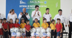 Ante más de 200 niños y niñas, se hizo la entrega de material deportivo en Soto la Marina.