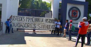 Un conjunto de aficionados se dio cita en las instalaciones de la Noria para reclamar a los jugadores la falta de caracter y Julio César Domínguez salió a dar la cara
