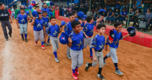 En representación del alcalde, la regidora Hilda Quiroga lanza la primera pelota en la ceremonia inaugural.