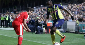 Bolt jugó los últimos 20 minutos en un partido de pretemporada con su actual club, el Central Coast Mariners de Australia