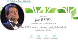 La funeraria ‘Caballero Rivero Westchester’ dedicó este martes un obituario a José R. Sosa, acotación del verdadero nombre de José José