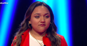 TAMPICO, TAMAULIPAS.- La tampiqueña Karla Sofía, giro la silla de Lupillo Rivera durante una de las contiendas de la nueva edición de ‘La Voz México’