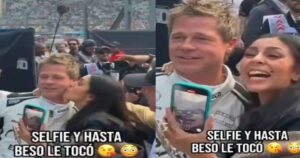 Una fan sorprendió al actor al besarlo en la mejilla tras realizar unas escenas en el Autódromo Hermanos Rodríguez.