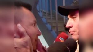 Aunque el reportero se mostró incómodo, el actor lo sostuvo del rostro mientras estuvo a punto de besarlo en la boca