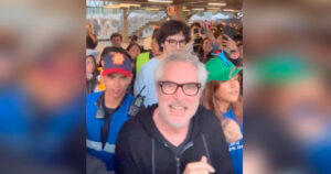 El cineasta mexicano acudió al concierto acompañado de sus hijos mientras se abre paso entre fanáticos que se toman fotos con él