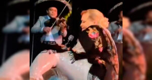 La cantante se acercó al borde del escenario para tomarse una foto con el público, pero titubeó al levantarse y cayó en pleno concierto