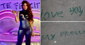 Un supuesto fanático ruso pintó unos grafitis afuera de la casa de Shakira en Barcelona, España