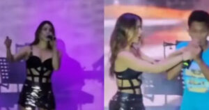 La cantante fue sorprendida cuando un joven subió al escenario e interrumpió su presentación. Esto fue lo que pasó en el show de María León.