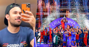 Como buen aficionado, Eduin Caz, vocalista de Grupo Firme, disfrutó de la Gran Final aun cuando estaba en pleno concierto.