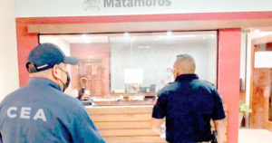 Elementos de la Fiscalía General de Justicia acudieron al ayuntamiento de matamoros para indagar sobre el presunto uso de camiones recolectores de basura para bloquear accionar policial luego de enfrentamiento ocurrido el vienes pasado
