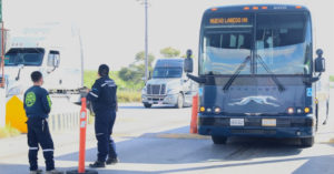 Los filtros municipales que implementó el alcalde Enrique Rivas revisan a pasajeros de autobuses, automovilistas y traileros que ingresan a Nuevo Laredo, para prevenir el contagio de coronavirus.