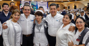 Francisco García Cabeza de Vaca y Enrique Rivas celebran a más de 300 trabajadores y trabajadoras de la salud.